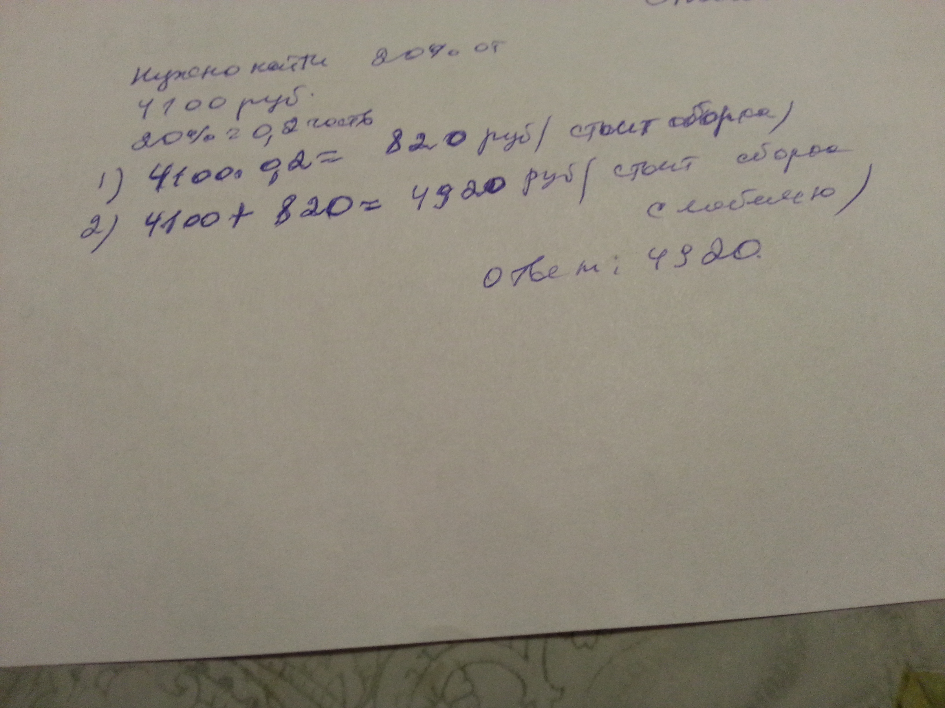 В магазине вся мебель продается в разобранном виде. Покупатель может заказать сборку мебели на дому стоимость которой составляет 20% от стоимости купленной мебели Шкаф стоит 4100 рублей. Во сколько рублей обойдется покупка этого шкафа вместе со сборкой. Решите дам лучший ответ.