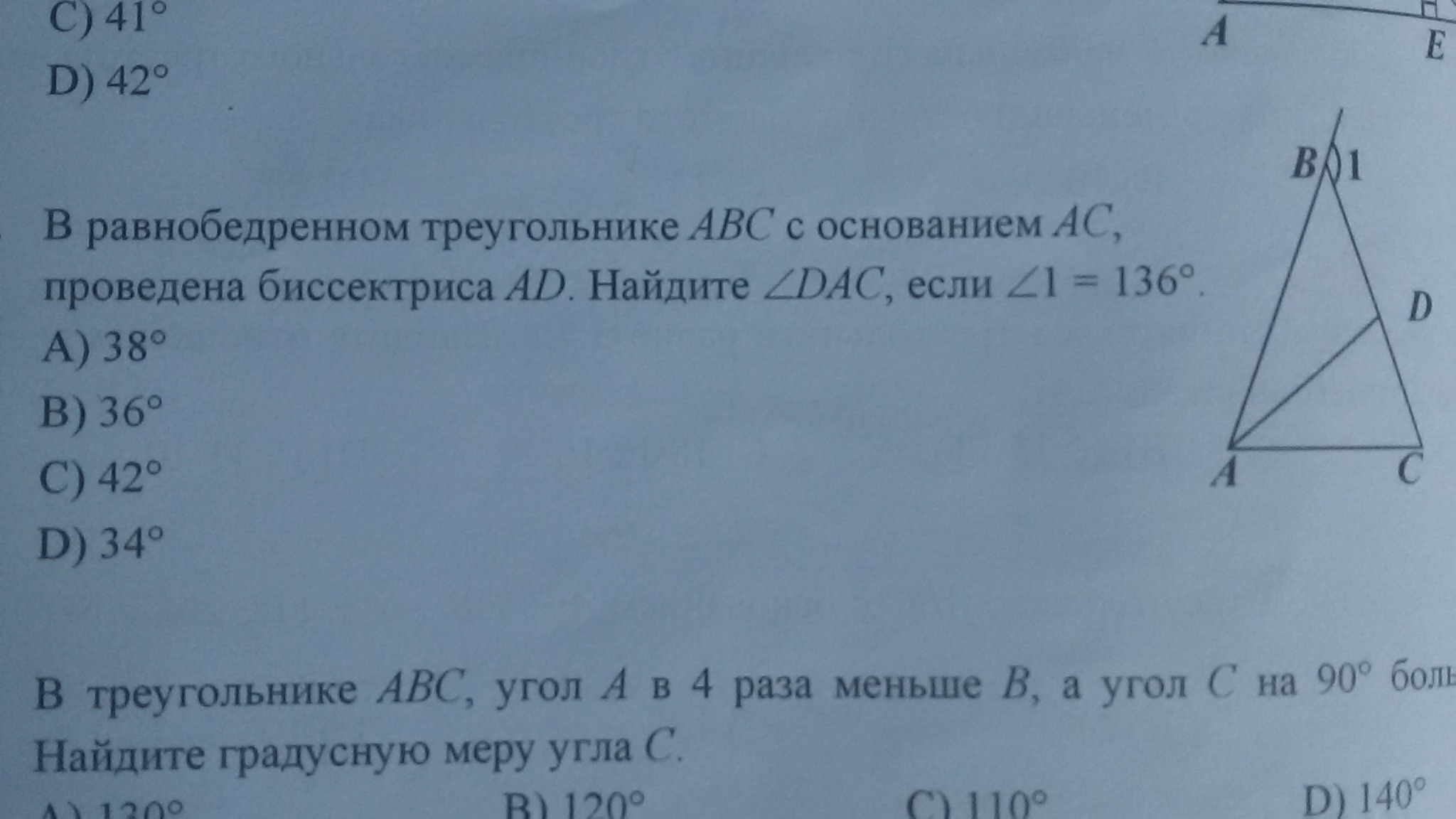 Далее найдем углы A и С (они будут равны т.к. треугольник равнобедренный): (180 - 44) / 2 = 68