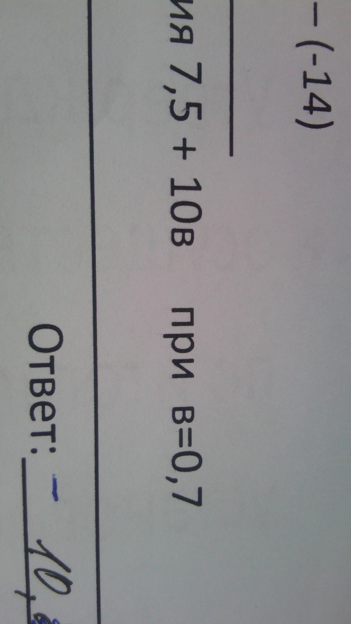 если в=0,7, то 7,5+10в = 7,5 + 10*0,7 = 7,5+7=14,5