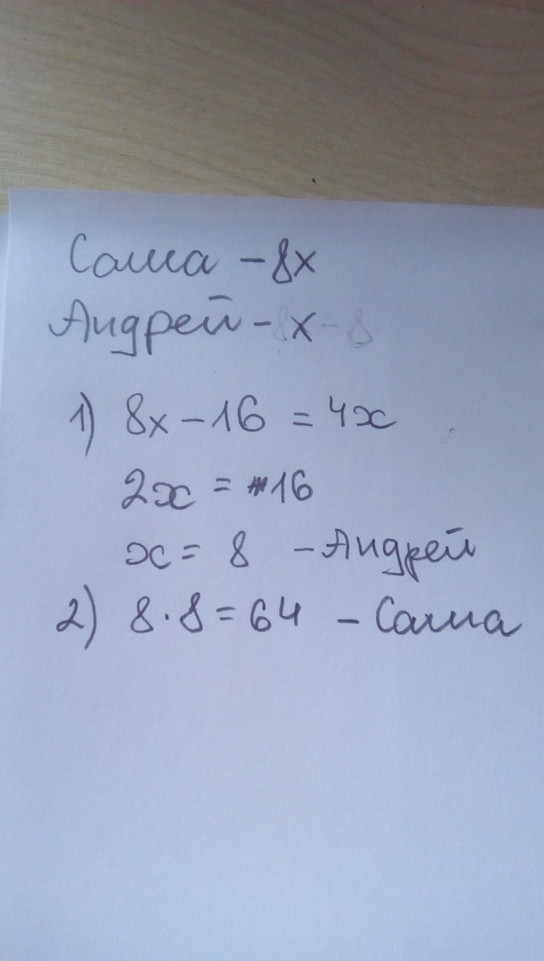 У Саши в 8 раз больше марок, чем у андрея. Если Саша отдаст Андрею 16 марок, то у него станет марок в 4 раза больше марок. Сколько марок у каждого из мальчика?