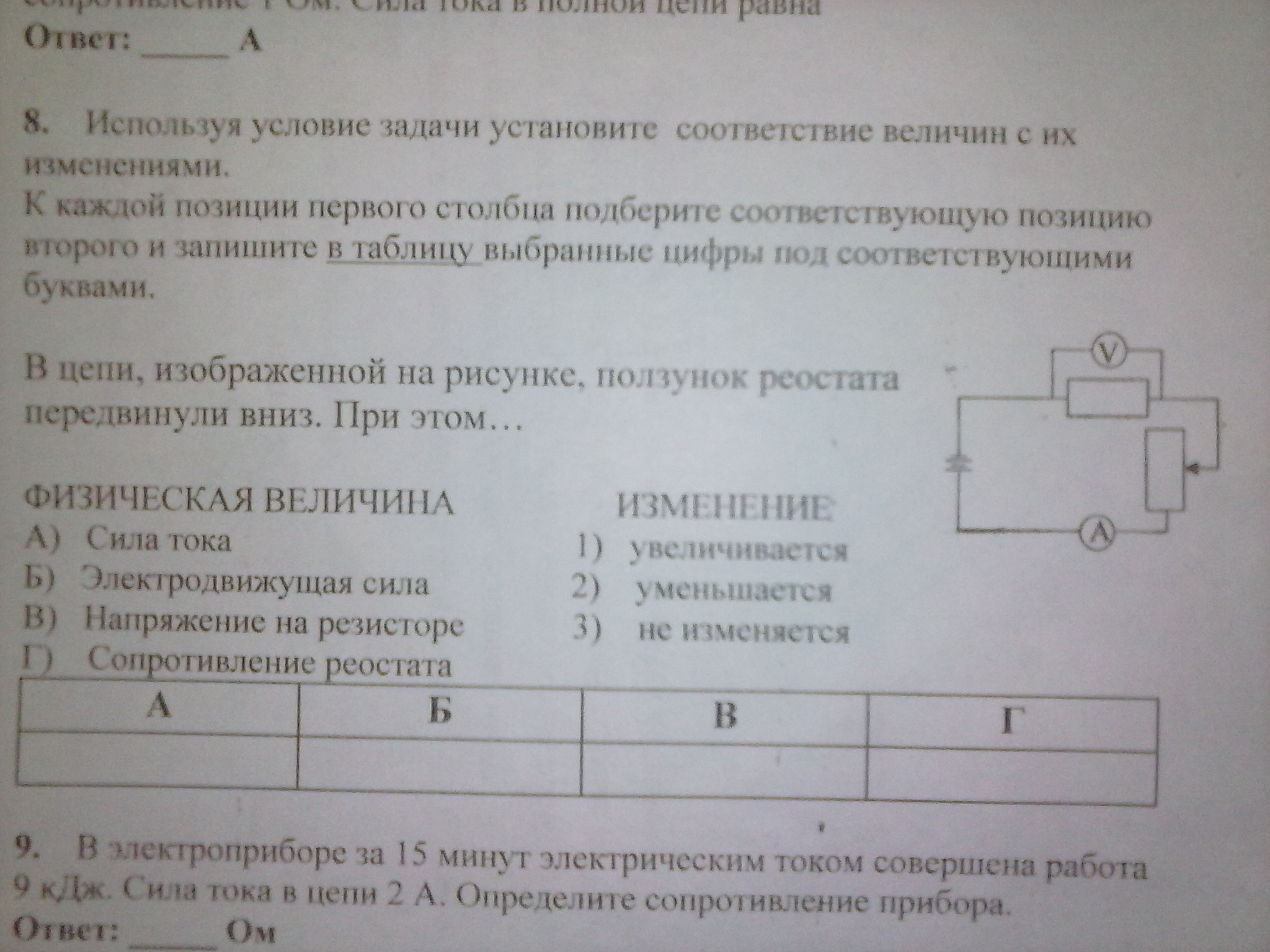 Сопротивление уменьшается, так как количество мотков проволоки(на реостате) уменьшается(ближе к проводу), если передвинуть ползунок реостата вниз.