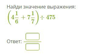 ( 4 1/6 + 7 1/7) : 475= 1/42