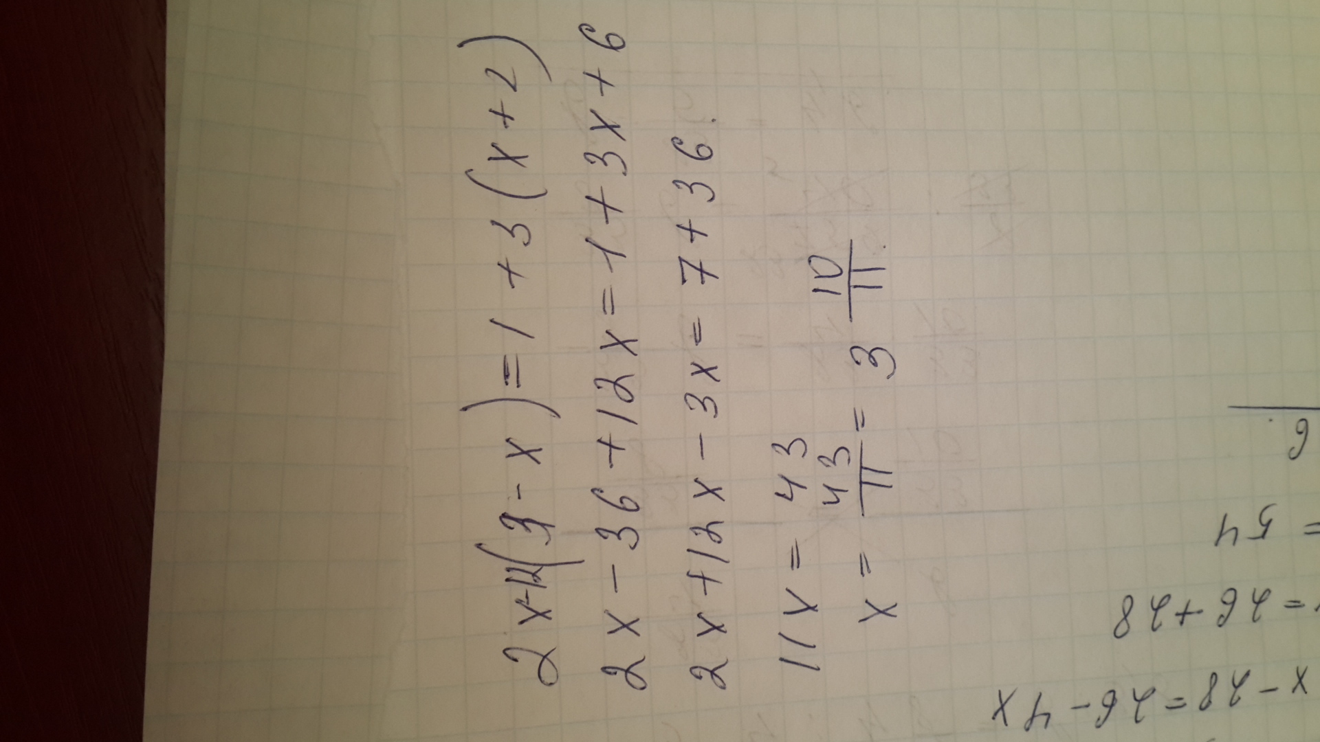 х=43/11=3 10/11