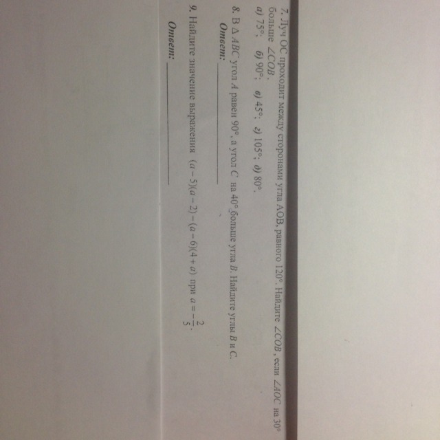 Задача 8. Рассмотрим, что мы знаем о треугольнике. Он прямоугольный, исходя из того, что угол А равен 90°. Сумма углов в треугольнике равна 180° - в любом. ∠А + ∠В = 180° - 90° = 90°. Пусть x - это ∠В. Тогда ∠С равен x+40. Т.к. их сумма равна 90°, составим и решим уравнение. x + x + 40 = 90°2x = 90 - 402x = 50 / :2x = 25 (°) - ∠В ∠С = 25° + 40° = 65°.