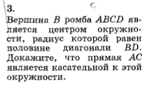 3) Так как диагонали ромба точкой пересечения К делятся пополам и взаимно-перпенидкулярны, то радиус окружности проведенный в точку касания К перпендикулярен АС, следовательно АС - касательная.