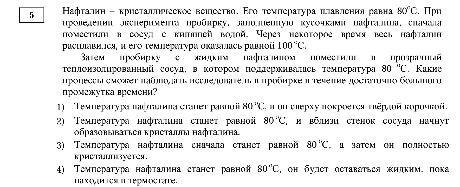 4) под вопросом, термостат прозрачный, значит есть потери на излучение, не даром в термосе стенки зеркальные, чтобы не допустить излучения; если потерь тепла вообще нет, то нафталин будет жидким при 80гр.