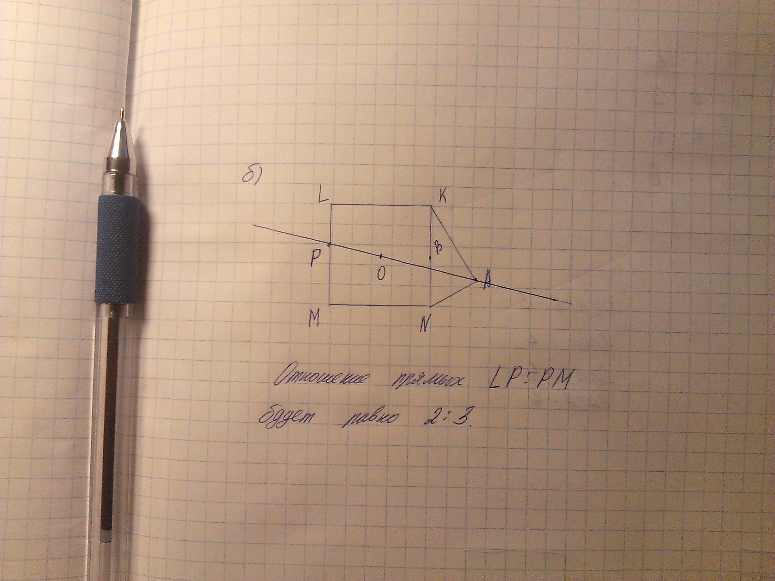 б)Прямая АО пересекает сторону ML квадрата в точке Р. найдите отношение LР:РМ