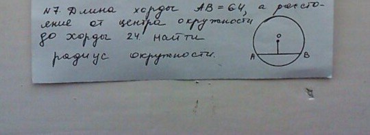 проведите радиус ОН, Образуется треугольник, катер OD=24, DB=32, тогда R=OB, OB^2=OD^2+DB^2=24^2+32^2=1600,