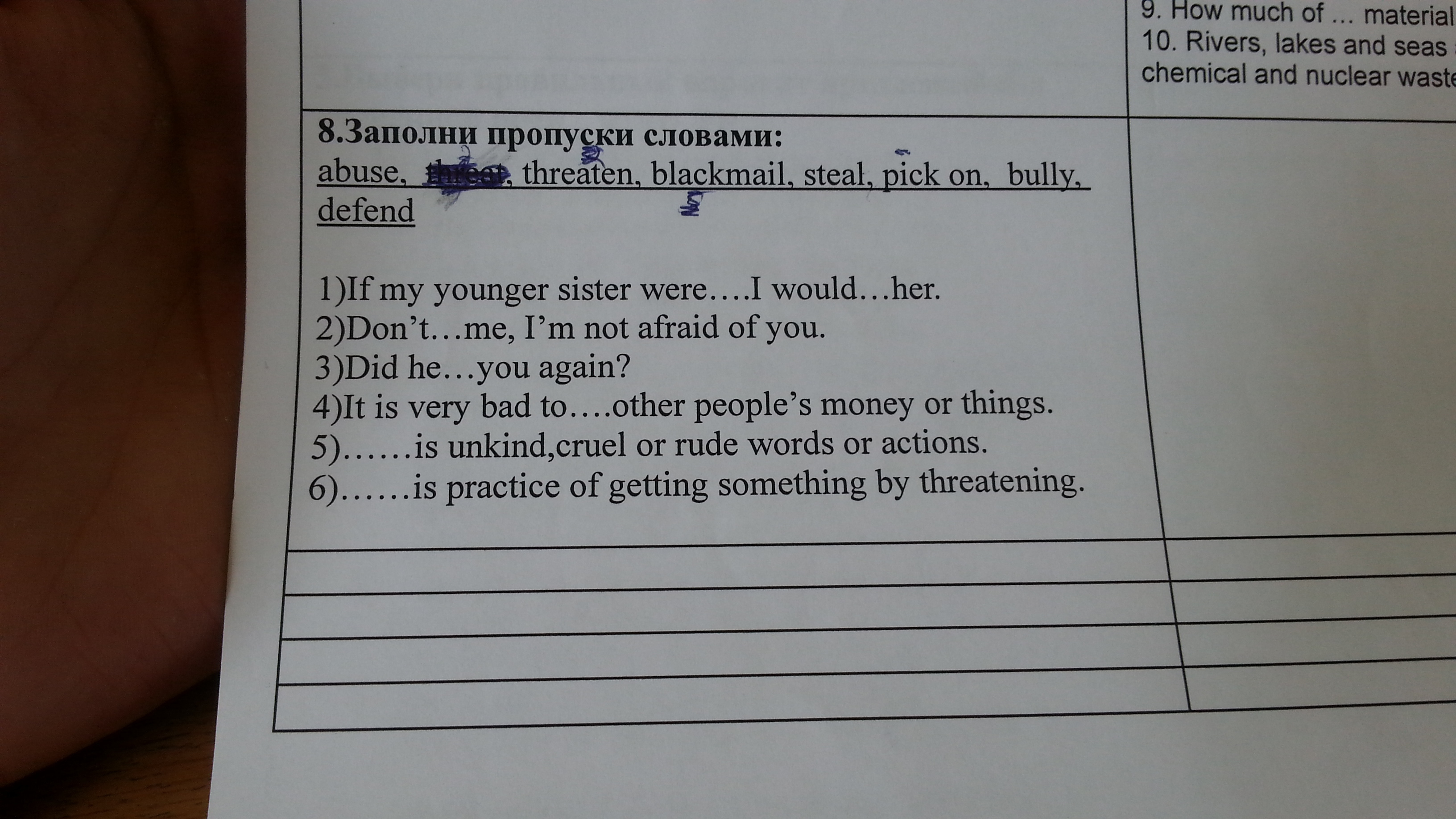 1)threaten,defend