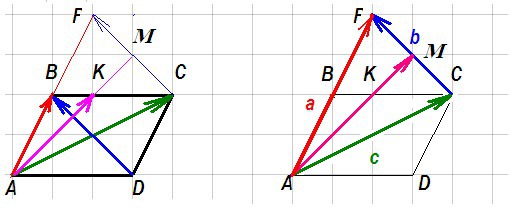 AK=(2/3)AM=(2/3)(a+b/2)