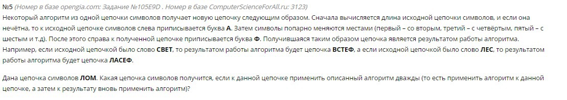 Некоторый алгоритм из одной цепочки символов получает новую цепочку следующим образом.