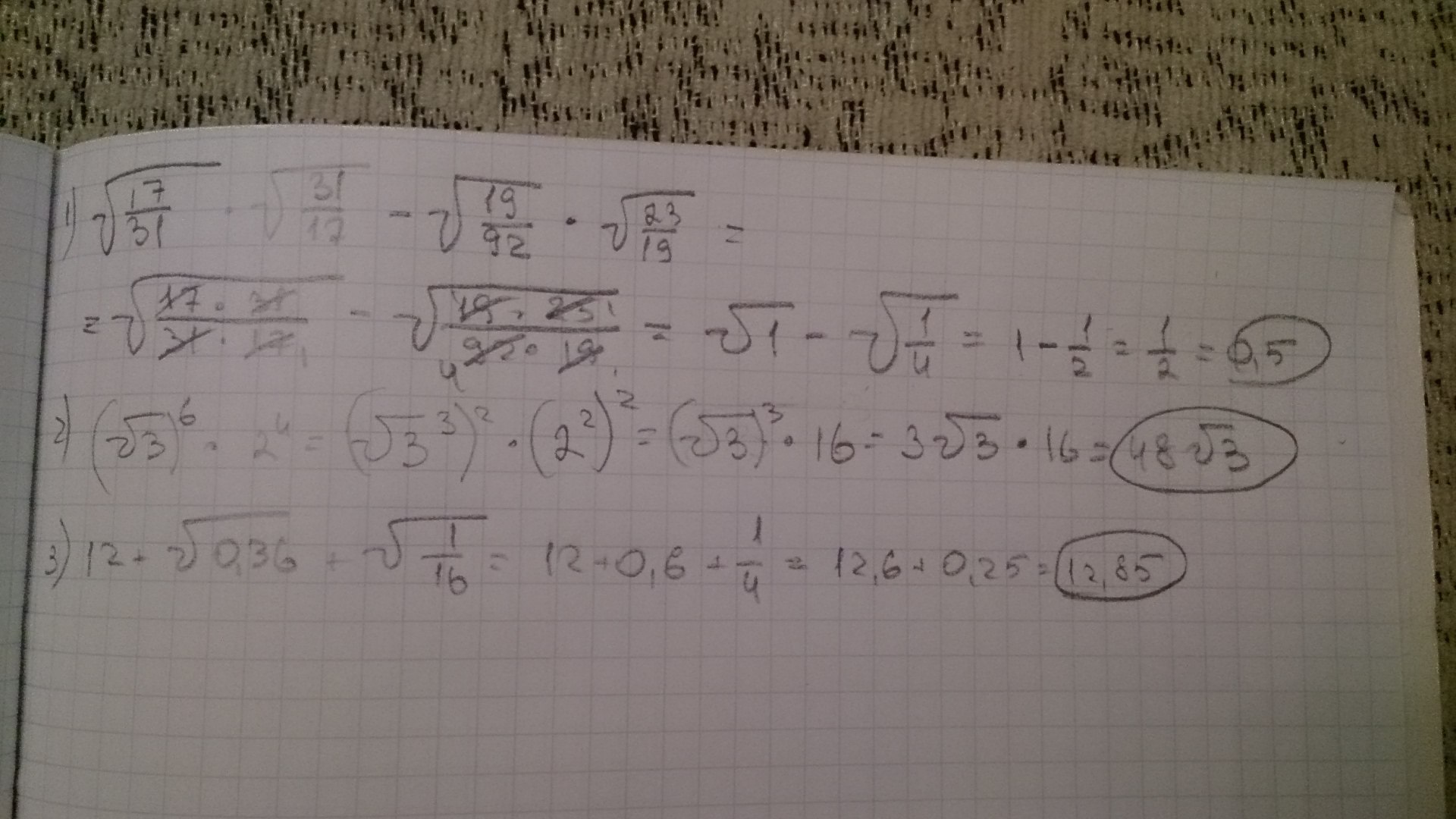 1. √17/31 * √31/17 - √19/92 * √23/19