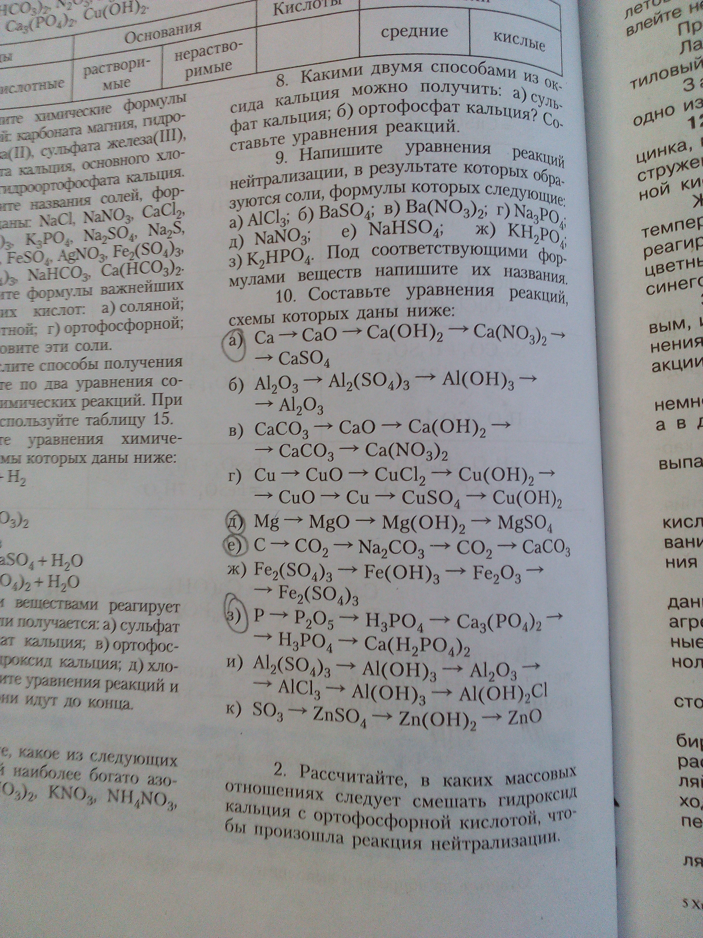 4P + 5О2 = 2P2O5, P2O5 + 3Н2О = 2H3PO4, 2H3PO4 + 3Са(ОН)2 = Ca3(PO4)2 + 6Н2О, Ca3(PO4)2 + 3СО2 + 3Н2О = 2H3PO4 + 3СаСО3, 2H3PO4 + Са (ОН)2 = Ca(H2PO4)2 + 2Н2О