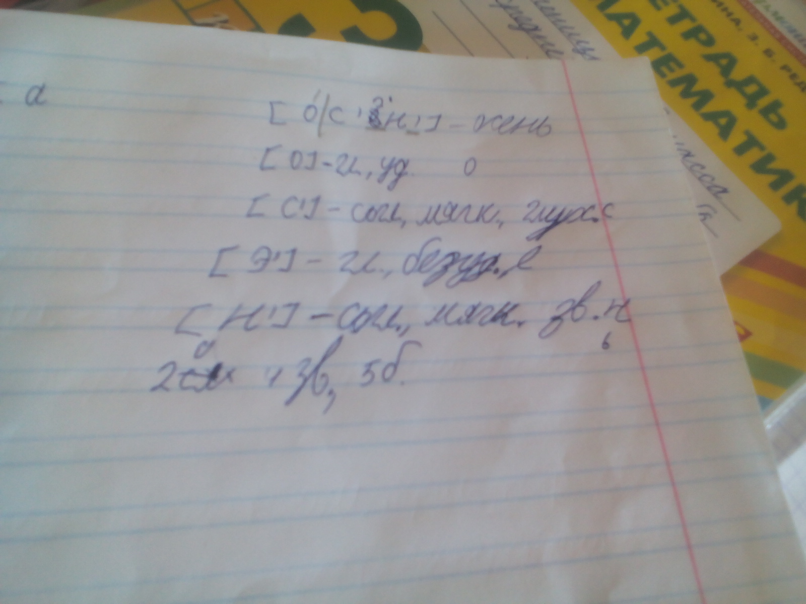 о→[о]:гласныйс→[с']:согласный, парный глухой, парный мягкийе→[и]:гласныйн→[н']:согласный, непарный звонкий, сонорный, парный мягкийь→—
