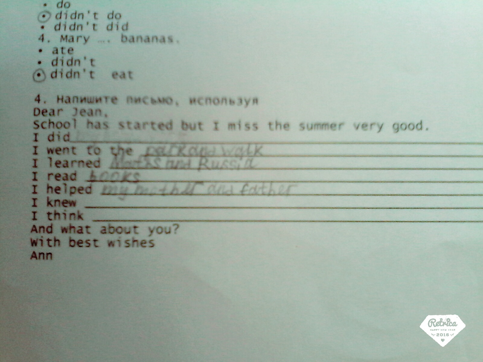 I did all I want, during my Holiday. I knew a lot of interesting things about the life. I think it was the best summer holidays