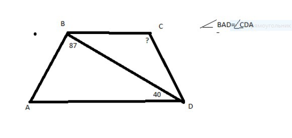 1) углы ABD и СBD равны как накрест лежащие, отсюда ABD=CBD=40