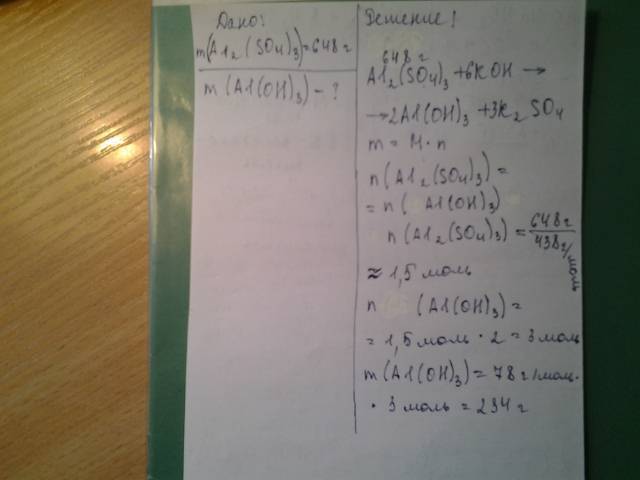 ПОМОГИТЕ ПОЖАЛУЙСТА вычислить массу гидроксида алюминия, образующегося при взаимодействии 648 г сульфата алюминия с гидроксидом калия