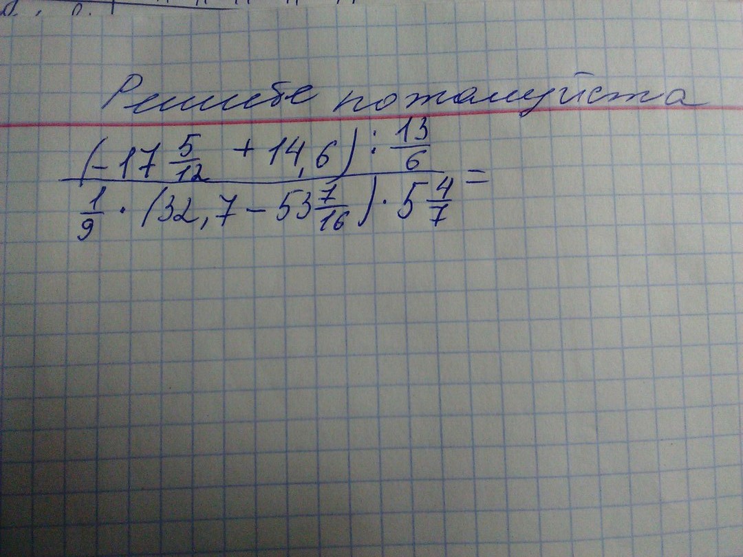 Точно, спасибо :) Правильное второе и третье действия: 2. 1/9 * (327/10-855/16) * 39/7 = 39*(2616/80-4275/80)/63 = 39*(2616/80-4275/80)/63 = -39*1659/(80*63) = - 64701/5040 = -1027/80. 3. -13/10 : -1027/80 = 8/79