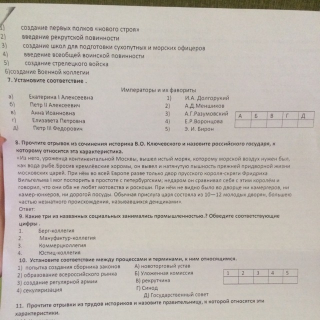 7). А - 2; Б - 1; В - 5; Г - 3; Д - 4