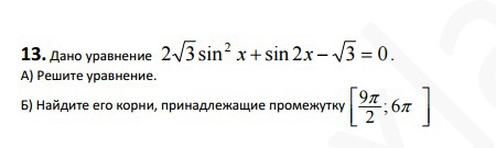 √3 sin²x+ 2sinx cosx-√3cos²x=0
