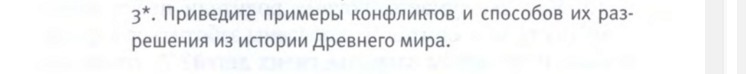 Например,конфликты были в Древнем мире,когда случались войны с обеих сторон,и все это решалась не простым разговором,а целой войной и разрушением,но сейчас другое время и в любых ситуациях решается разговорным путем.