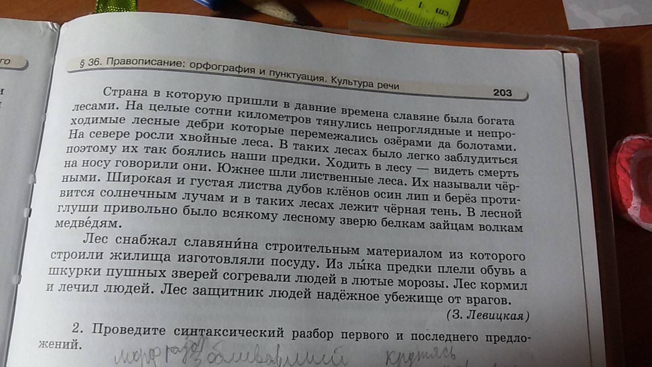 1) Страна (подлежащее,__), в которую пришли (сказуемое,=) в давние (определение, волнистой линией) времена (обстоятельство, _._._) славяне (подлежащее, ___), была богата (была богата: сказуемое, =) лесами (дополнение, _ _ _).