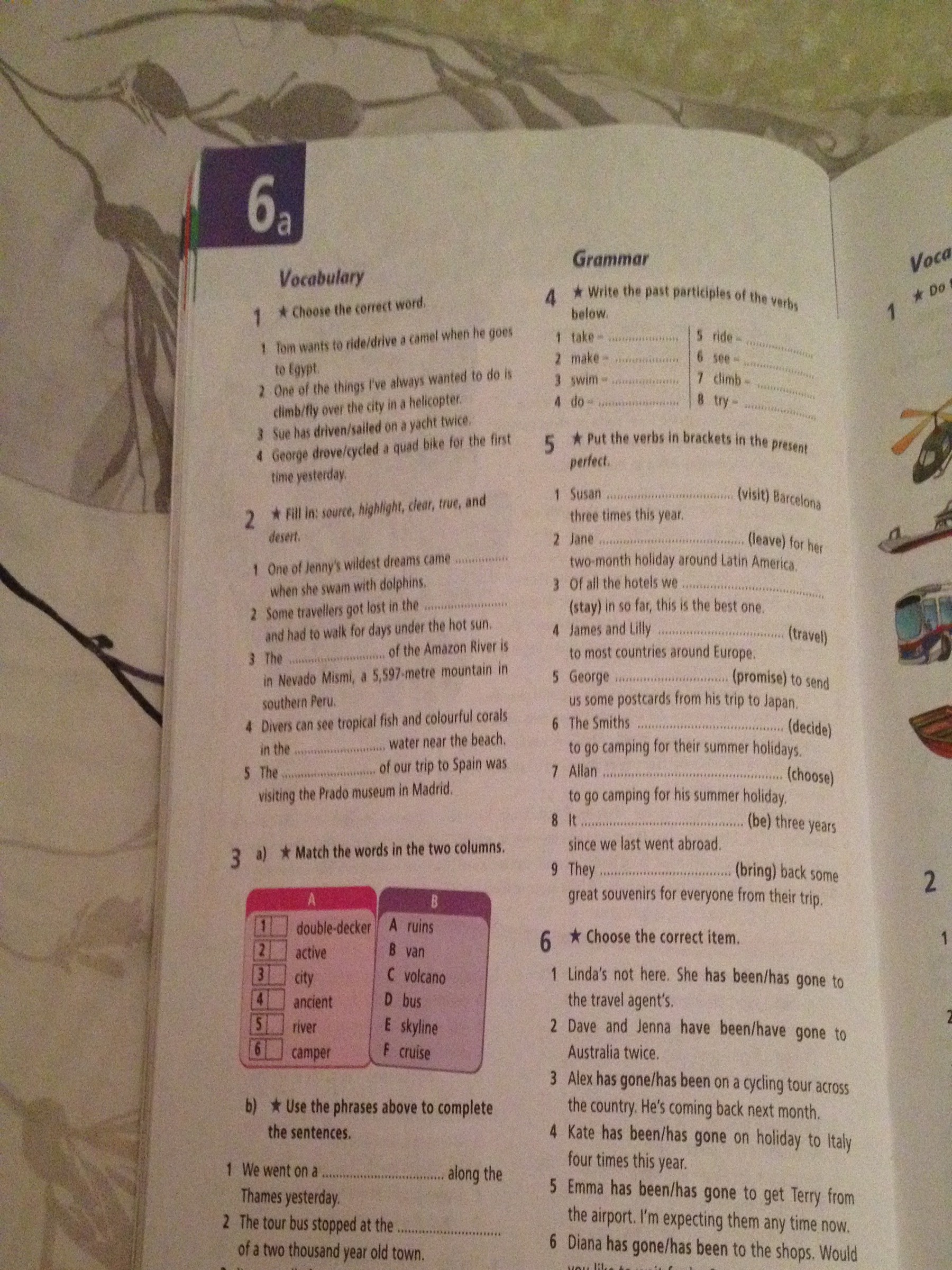 1 taken 2 made 3 swum 4done 5riden 6seen 7 climb 8 try