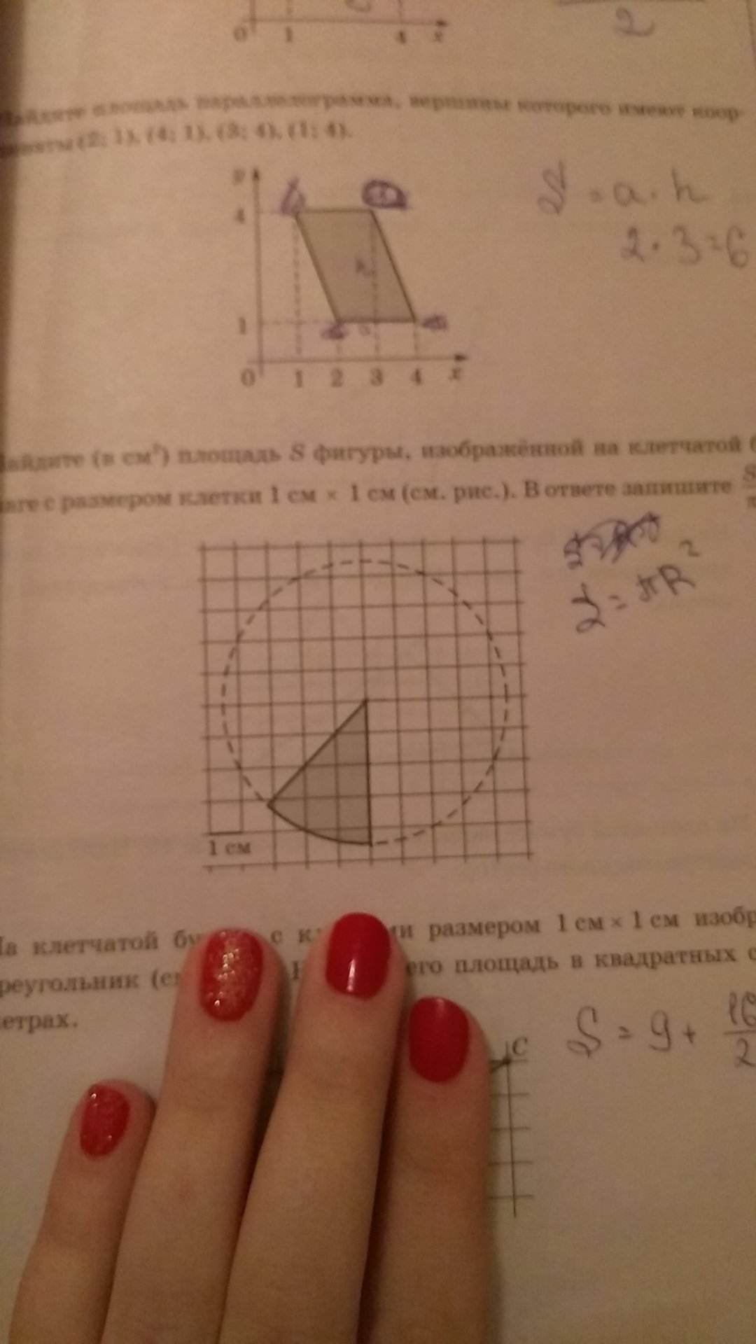 Если исходить из того что на рисунке радиус круга равен 2,25 см , то Площадь круга будет равна 15,9 cm^2