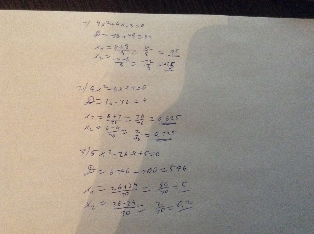 3 ) 5х(в квадрате) - 26 х + 5 = 0