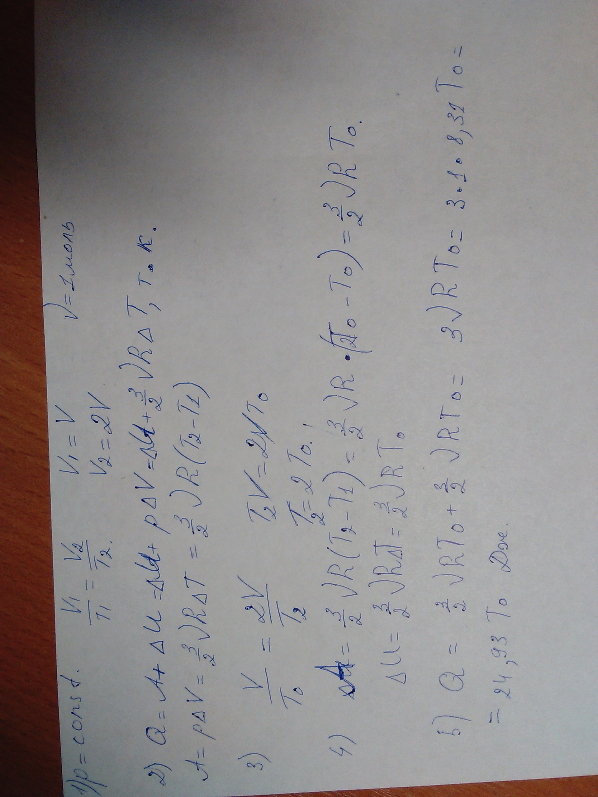 один моль идеального газа,находящегося при температуре Т○нагревают.Определите количество теплоты, которое надо подвести к газу чтобы изобарически увеличить его объем в двое?
