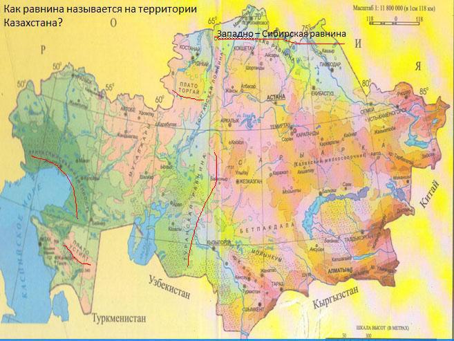 западно-сибирская равнина-возле Сибири. Туранская равнина-на юго-западе Казахстана
