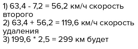 1) 63,4 - 7,2 = 56,2 км/ч скорость второго
