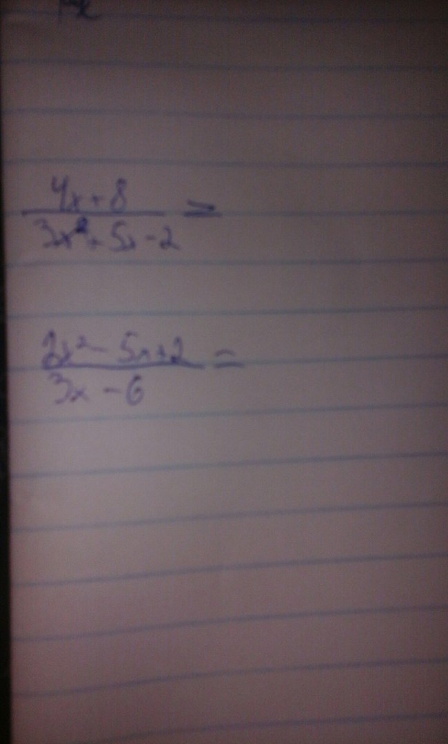 4x+8/3x^2+5x-2=4(x+2)/(x+2)*(3x-1)=4/3x-1
