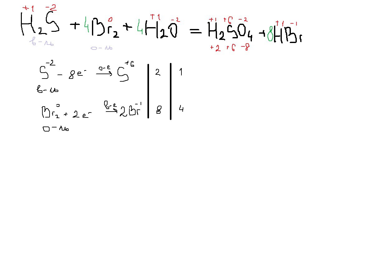 и востановитель;h2s+br2+h2o=h2so4+hbr.