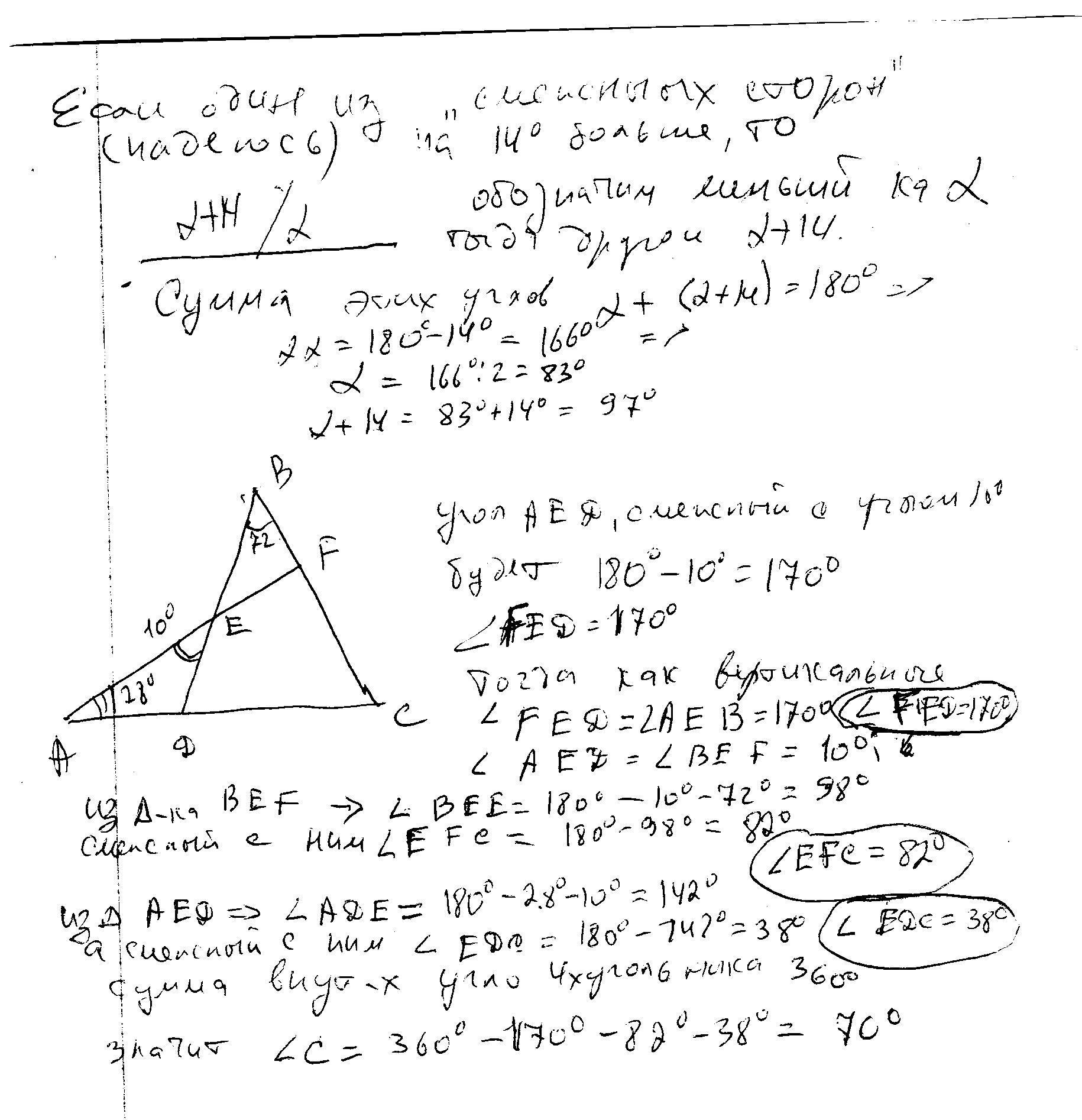 1. Один из сумижных кутив на 14* бильший за другый. Яка градусна мира меньшого с цых кутив?