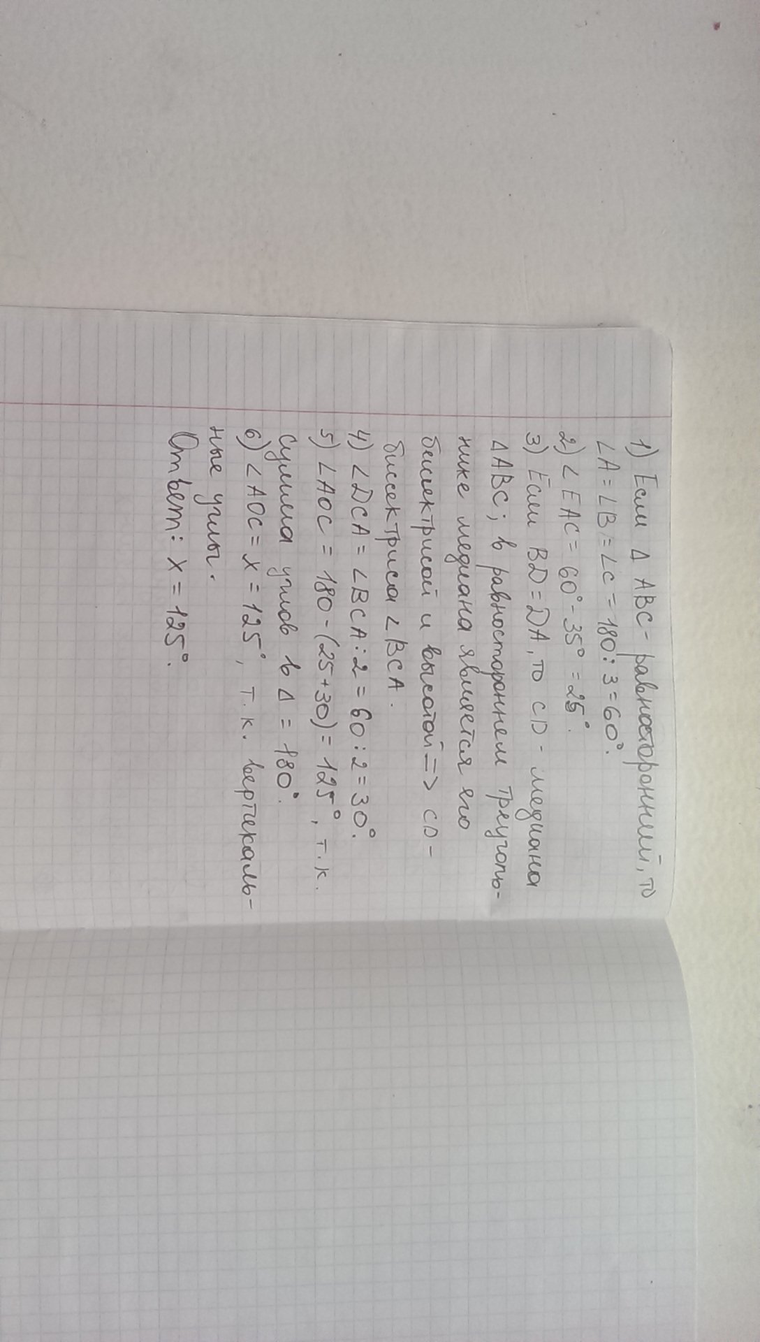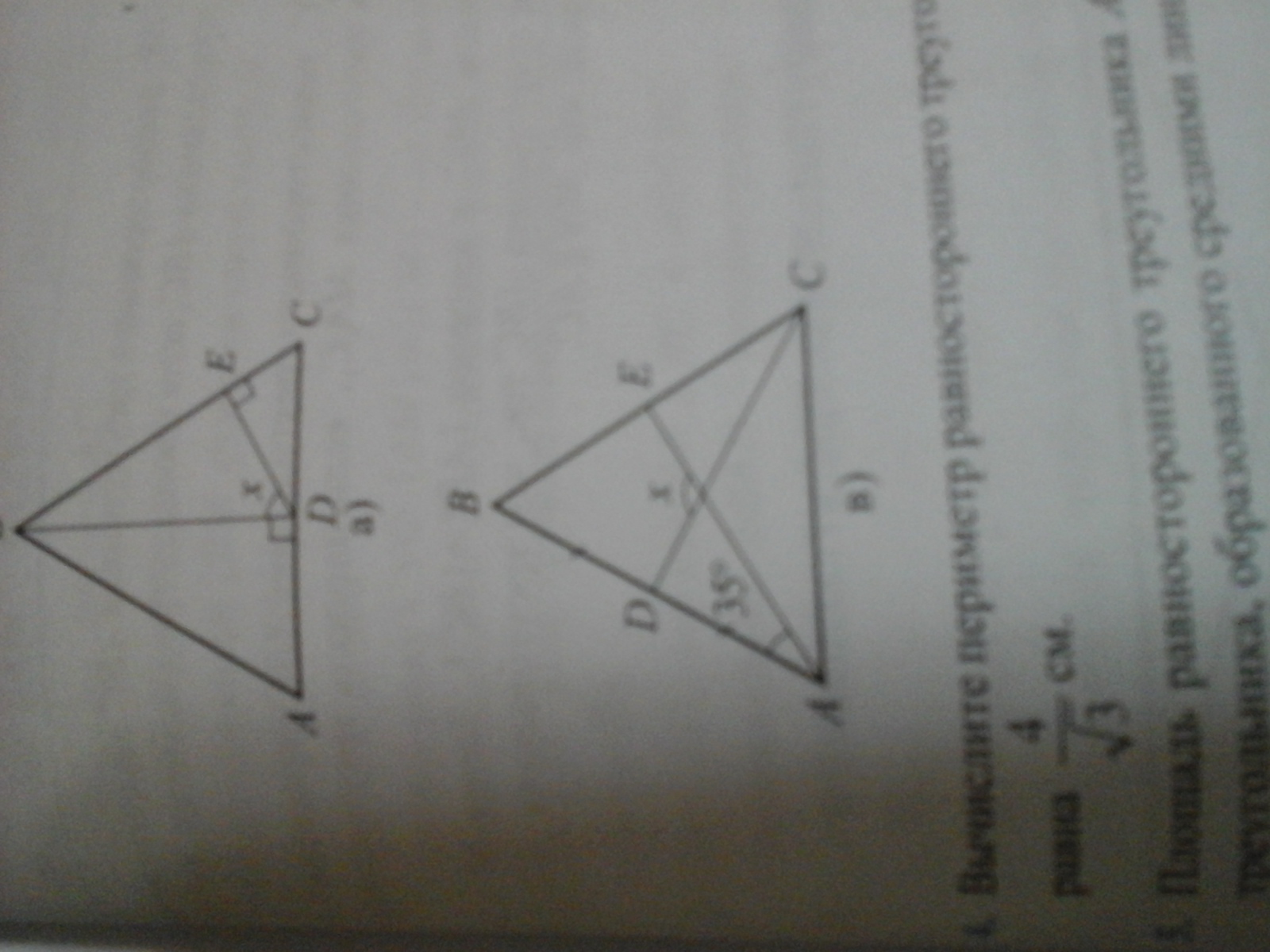 треугольник АВС изображенный на рисунке, равносторонний. рассмотрите рисунок и найдите величину угла обозначенную через х