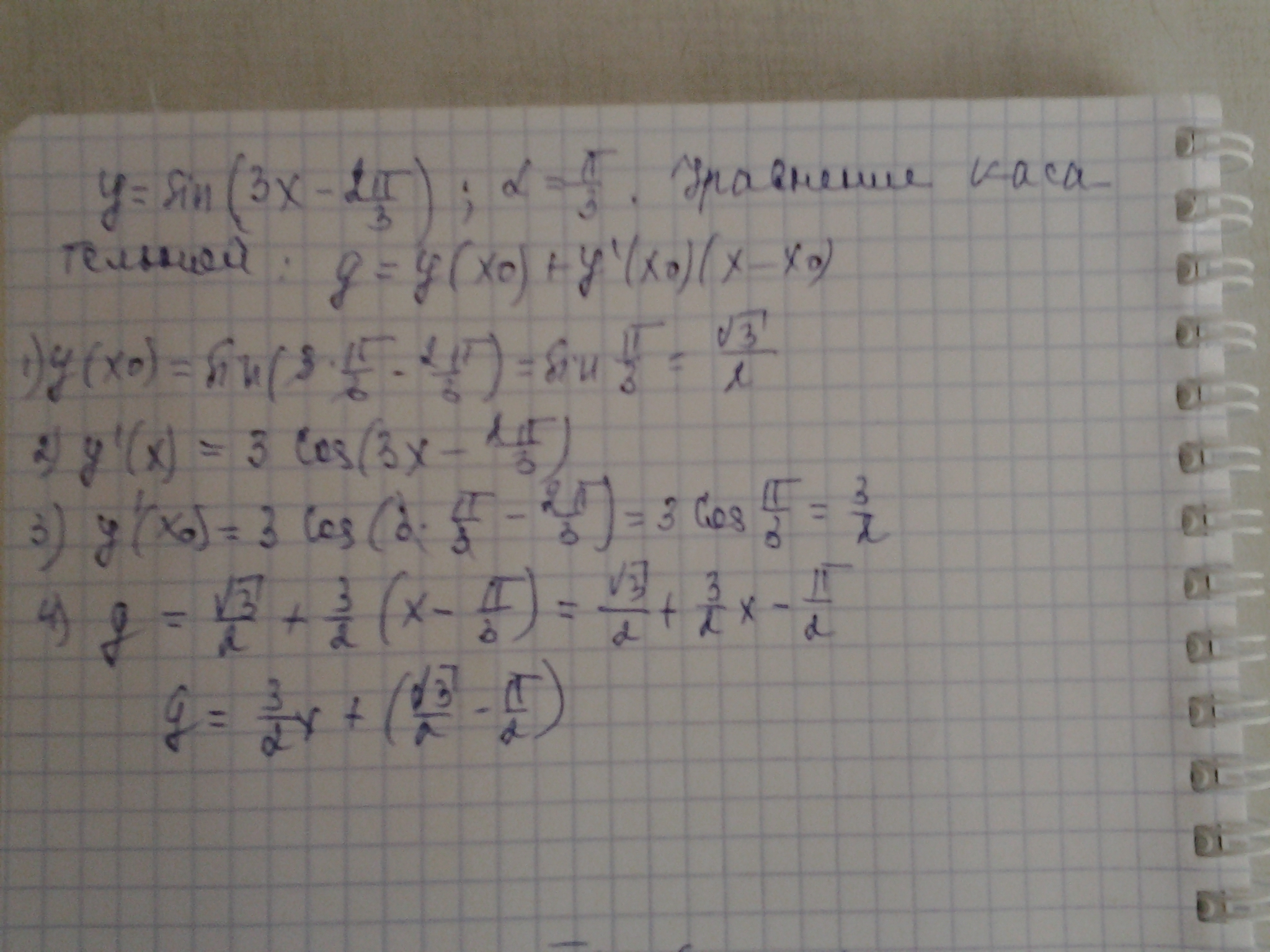 Применены формулы дифференцирования, общий вид уравнения касательной