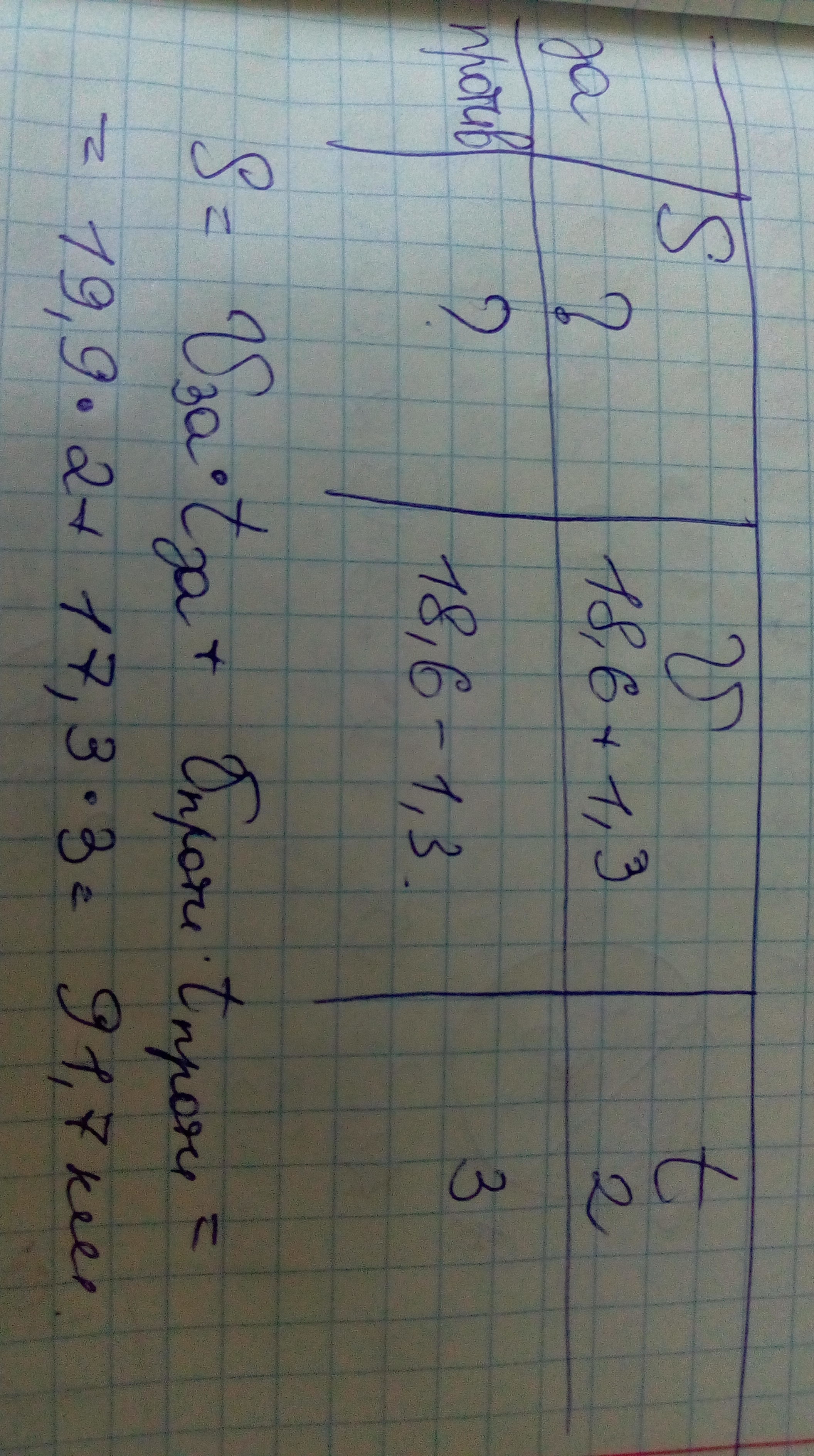 3. Катер прошел 3 ч против течения реки и 2 ч по течению. Какой путь прошел катер за эти 5 ч, если собственная скорость катера 18,6 км/ч, а скорость течения реки 1,3 км/ч