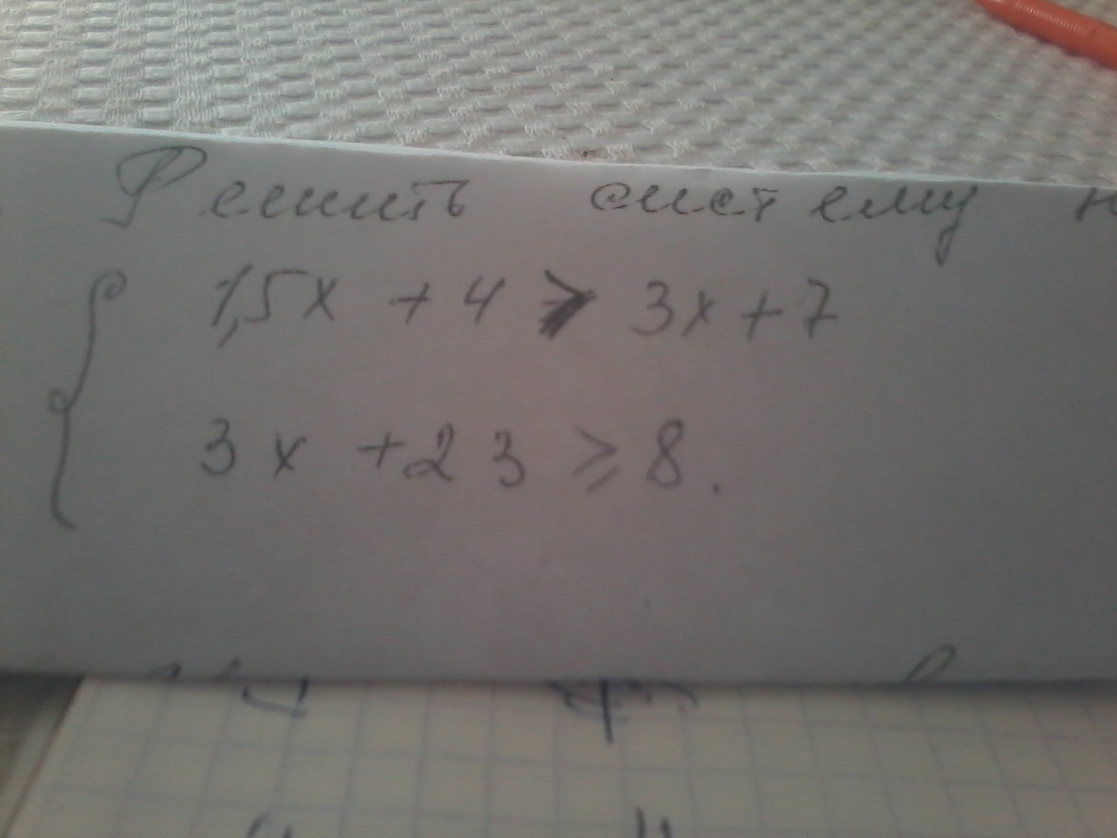 {3x+23≥8⇒3x≥8-23⇒3x≥-15⇒x≥-5