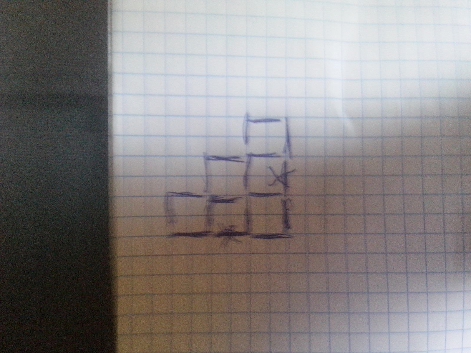 вроде бы вот так <br />номер 3, если не открывается фото, то просто убери внизу среднюю спичку и слева тоже среднюю спичку