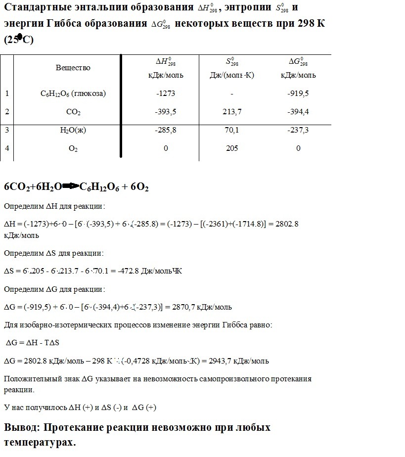 фотосинтез - это не самопроизвольный процесс, он протекает не при стандартных условиях, а при наличии источника энергии - солнечного света, и при наличии катализатора - хлорофилла.