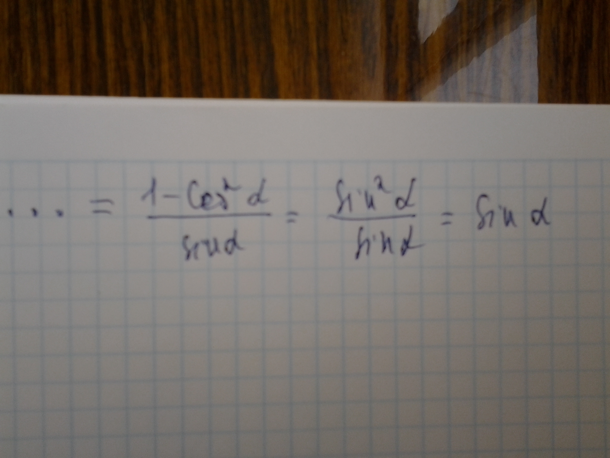 Применены: формула разности квадратов, формула зависимости синуса от косинуса