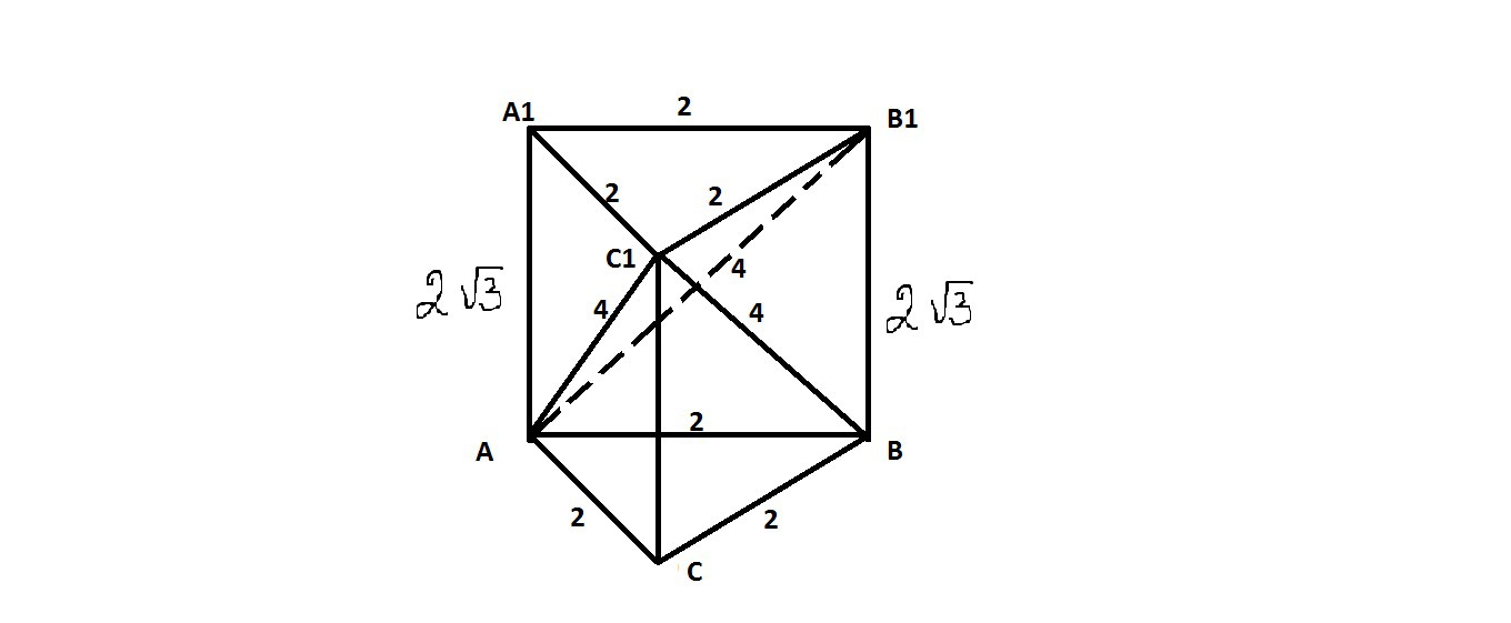 Vc1abc=(1/3)*Sabc*CC1=(1/3)*(2²√3/4)*2√3=2