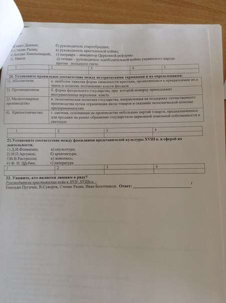10-3; 11-1; 12-2; 13-3,4; 14-1; 15-4; 16- Петр 1; 17- Анна иоанновна; 18-вабг.