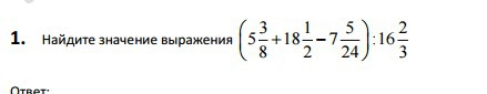5 3/8+18 1/2 - 7 5/24 = 43/8+37/2-173/24=129/24+444/24-173/24=400/24=50/3