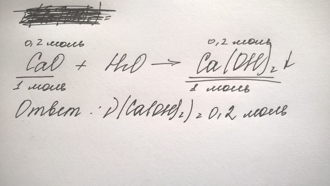 вычислите количество вещества гидроксида кальция образовавшегося в результате реакции 0,2 моль оксида кальция с водой