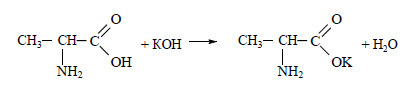 б) взаимодействие 2-аминоэтановой кислоты с гидроксидом калия