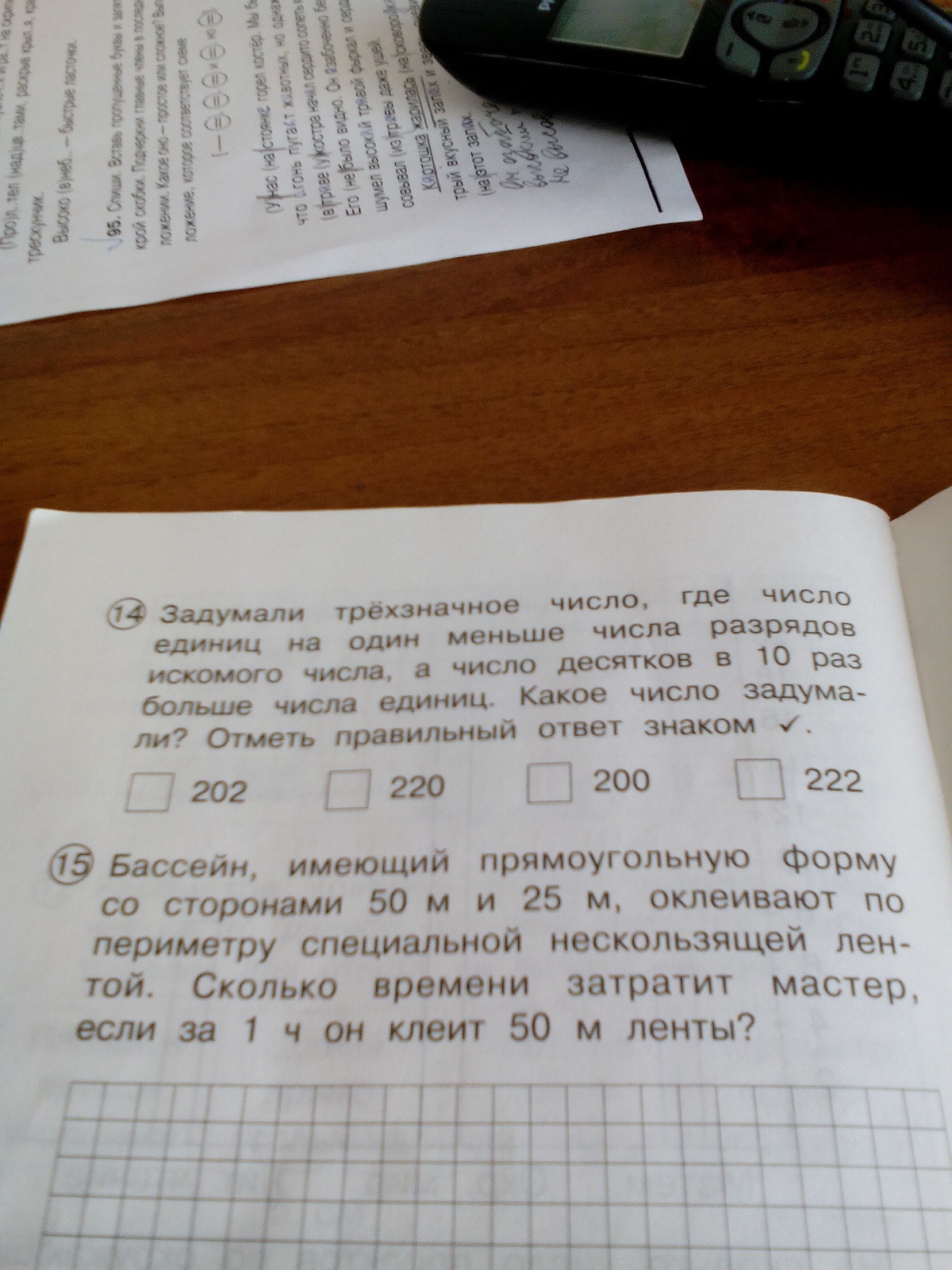 во всех числах разрядов 3 => 3 - 1 = 2(подходят 202 и 222). Число десятков в первом варианте в 10 раз больше единиц (20 : 10=2). ответ : 202