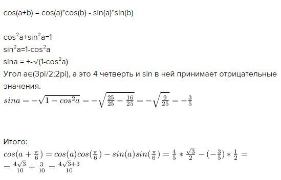 cos(a+b) = cos(a)*cos(b) - sin(a)*sin(b)
