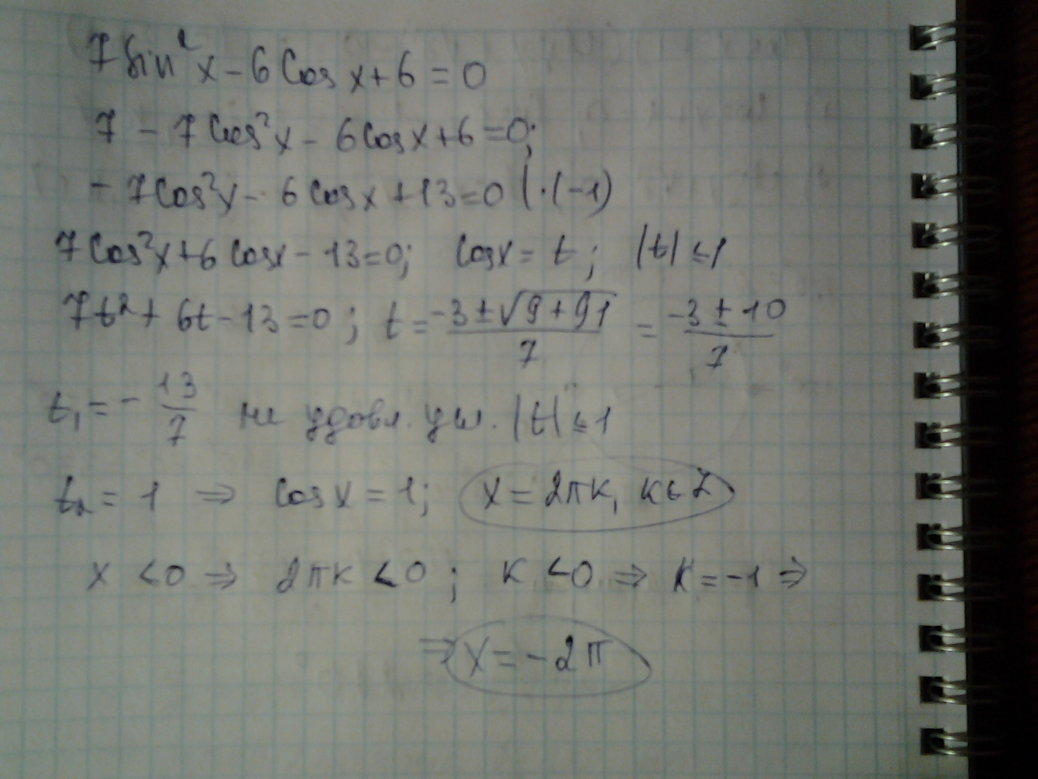 Применены: формула зависимости синуса от косинуса, замена переменной, табличное значение косинуса